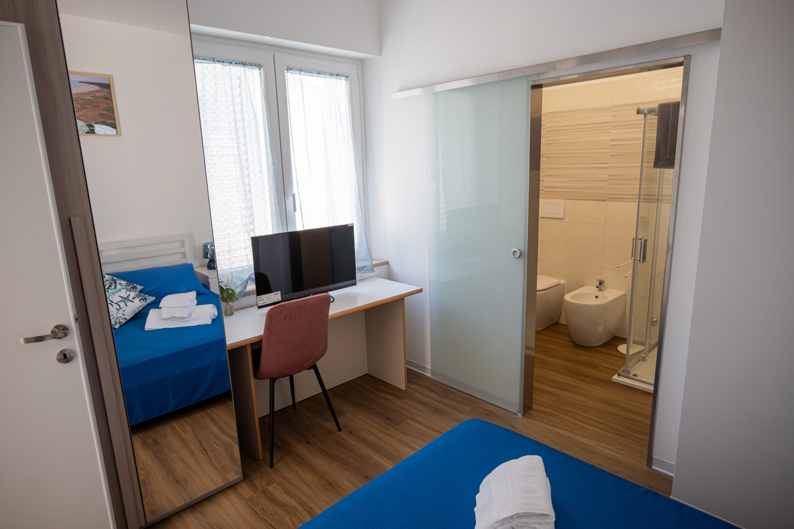Progettata per chi cerca una dimensione di assoluta tranquillità, questa camera unisce un design essenziale alla calma profonda delle tonalità marine. Gli ambienti, intimi e riservati, sono stati pensati per offrire un’esperienza di totale relax, dove la cura dei dettagli e la privacy dei servizi interni permettono di staccare completamente dal ritmo frenetico della quotidianità. È la scelta ideale per chi desidera una base d’appoggio elegante e silenziosa, immersa in un’atmosfera di rigenerante benessere